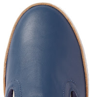 The slip can be difficult or easy. In the case of these Maison Margiela Leather And Suede Slip-Ons, it's easy. The upper consists of cool blue leather and rich navy suede accented with nice details like stitched tan leather outlining the sole. Easy to wear and integrate into your wardrobe. Pair this with that great baseball jacket or varsity and inky cuffed denim. Available now at Mr.Porter.com.